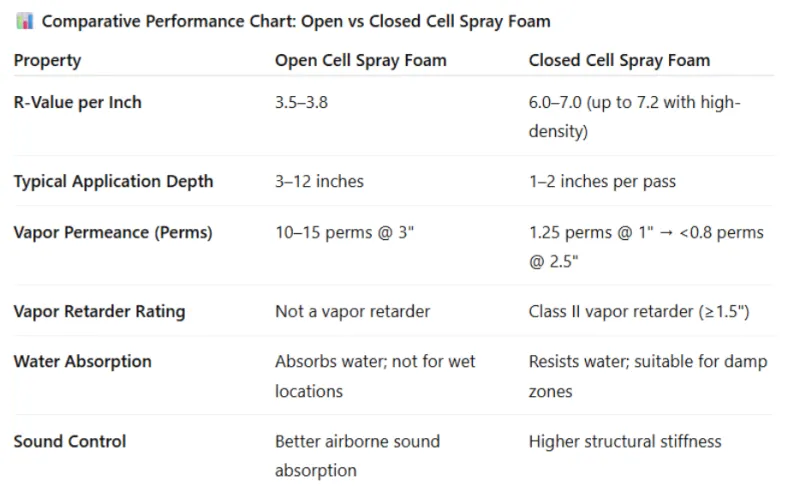 Foam type directly affects how much insulation is delivered per inch—and how much space is required to meet energy code targets. Installers must evaluate both material properties and cavity conditions.
